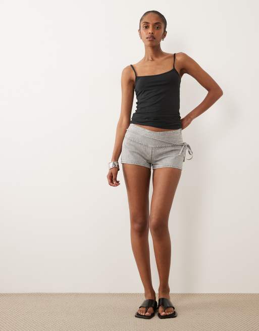 Mango Teen tie waist denim micro shorts in gray