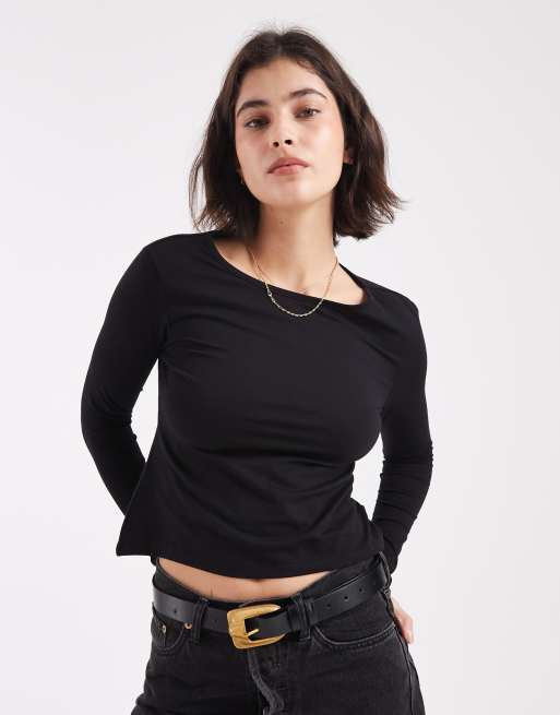 Mango Teen v-neck sculpt top in black