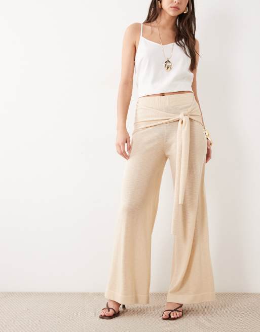 Mango tie waist straight pants in beige