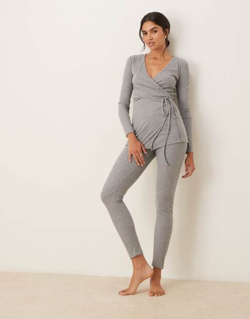 Mango wraparound ribbed knit pajama top & bottoms set in slate gray