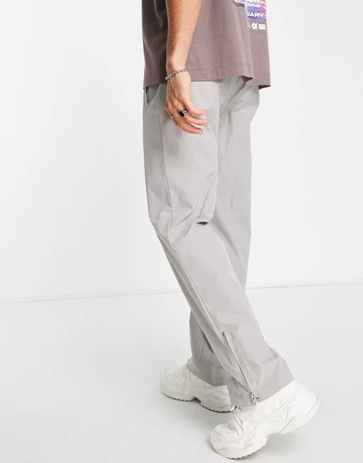 Mennace straight leg track sweatpants in gray with zip hem detail