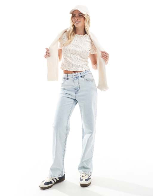 Miss Selfridge Petite heart pocket straight leg jeans in ice bleach wash
