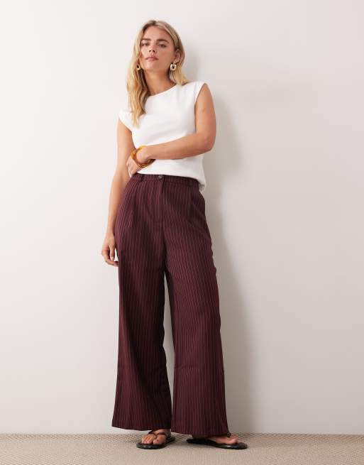 Miss Selfridge Petite pinstriped pants in burgundy