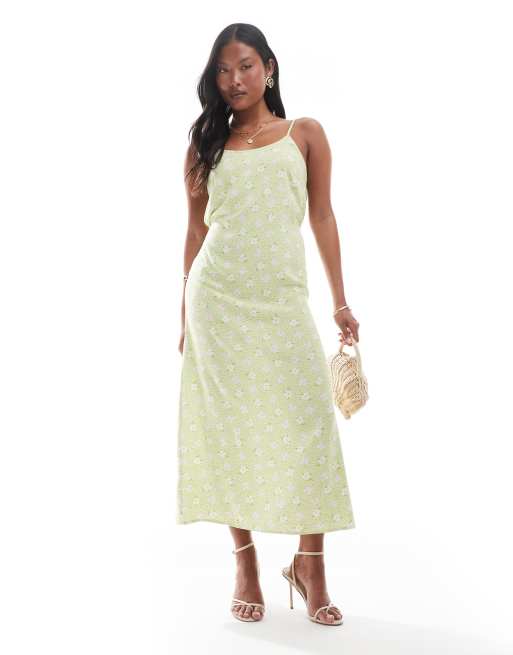 Miss Selfridge Petite strappy scoop neck maxi slip dress in green floral