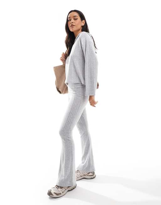 Miss Selfridge brushed chunky rib flare pants in gray