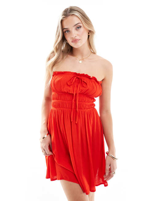 Miss Selfridge cheesecloth bandeau mini sundress in red