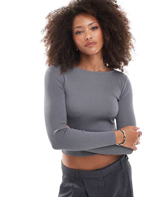 Miss Selfridge compact knit long sleeve top in charcoal heather