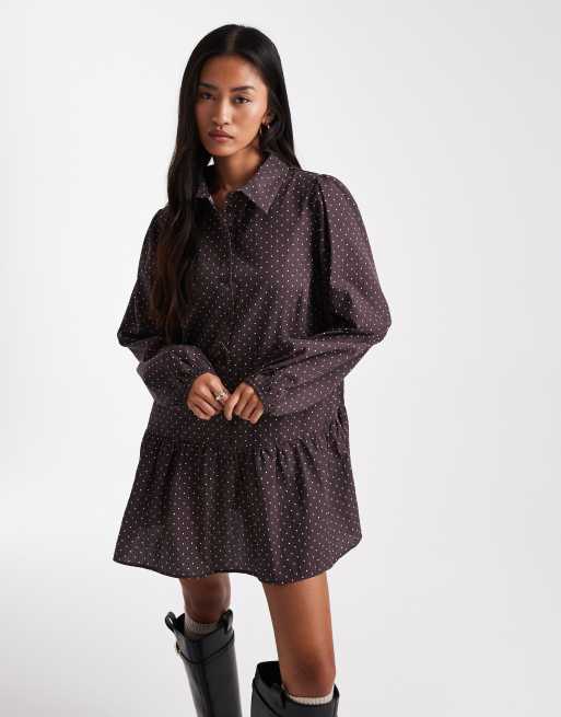 Miss Selfridge dropped waist mini shirt dress in polka dots
