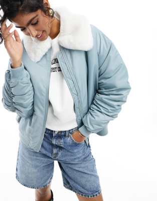 Miss Selfridge faux fur collar bomber jacket in slate gray