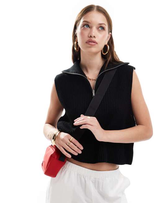 Miss Selfridge half zip sleeveless knitted tank top in black