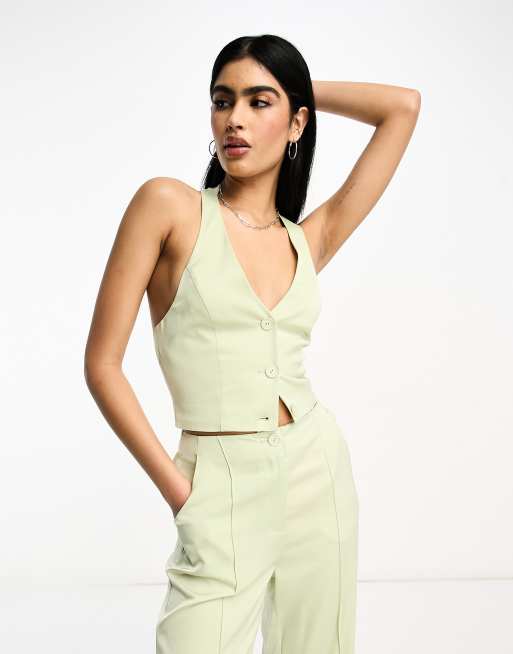 Miss Selfridge halterneck satin suit vest in green satin - part of a set