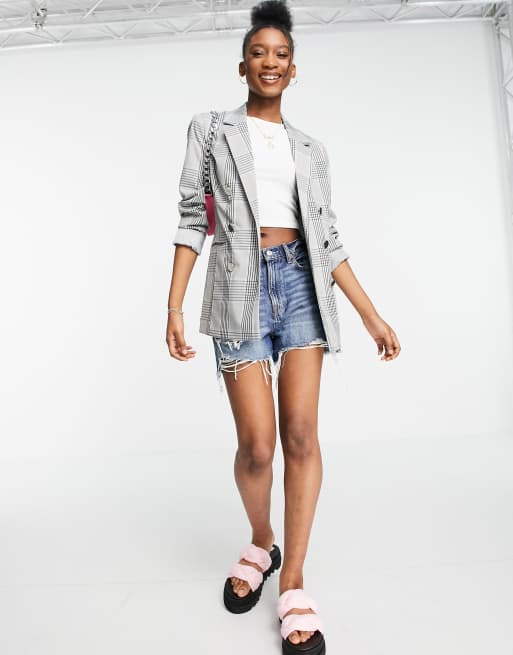 Miss Selfridge military blazer in mono plaid