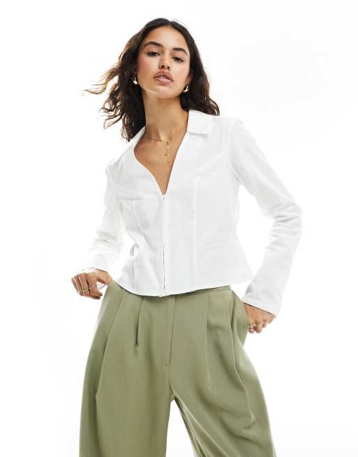 Miss Selfridge poplin fitted corset detail shirt in white
