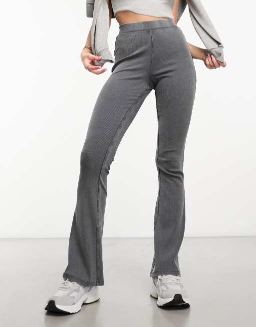 Miss Selfridge ribbed kickflare pants in acid wash charcoal