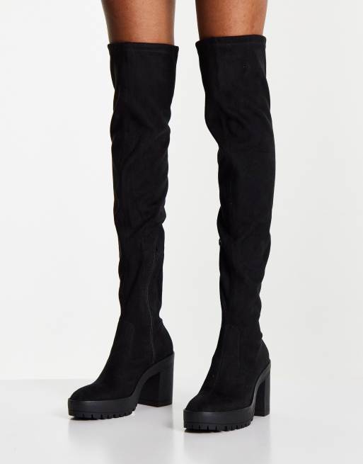 Miss Selfridge Rio black micro knee high boots