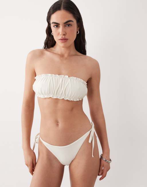 Miss Selfridge ruched bandeau bikini top in cream