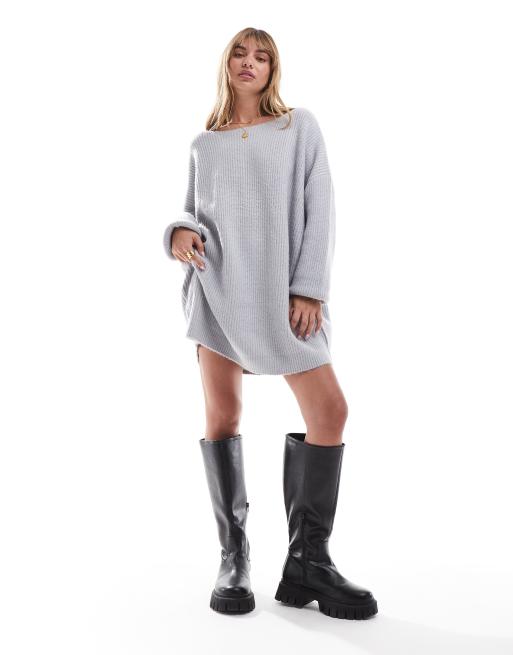Miss Selfridge slash neck oversized knit mini dress in gray heather