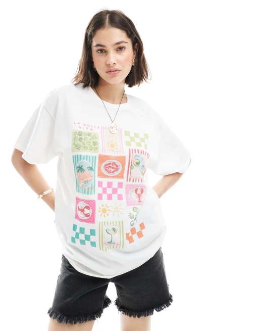 Miss Selfridge summer postcard graphic front print tee in white