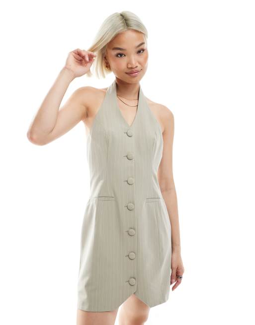 Miss Selfridge tailored halter mini dress in pinstripes