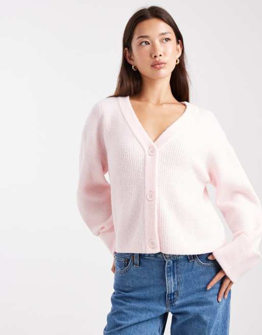 Miss Selfridge wide cuffs v neck cardigan in soft pink