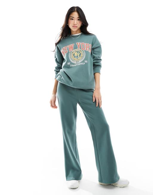 Miss Selfridge wide leg sweatpants in washed green - part of a set