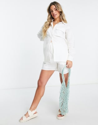 Missguided Maternity set linen look oversized shirt and shorts in white