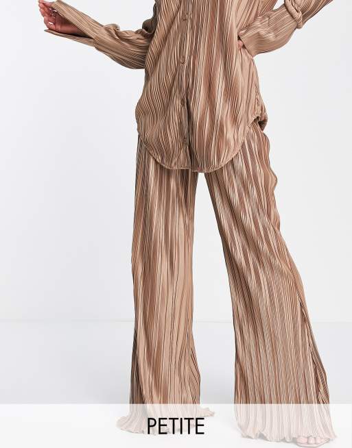 Missguided Petite plisse wide leg pants in camel - part of a set