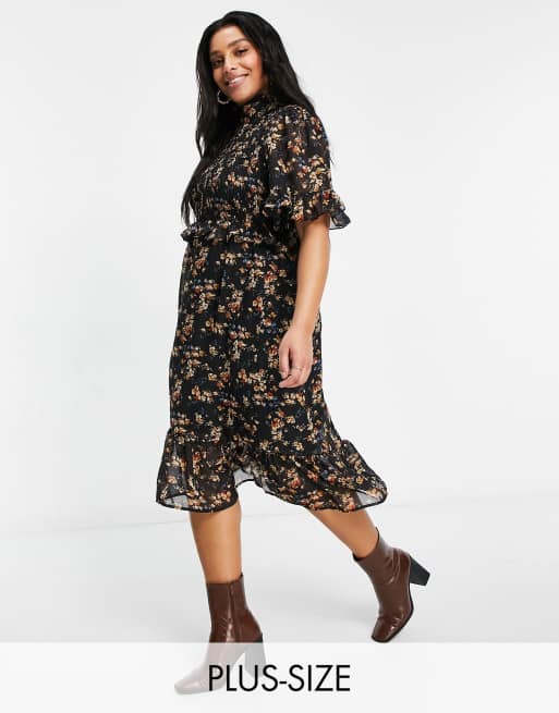 Missguided Plus midi dress wih high neck in black floral
