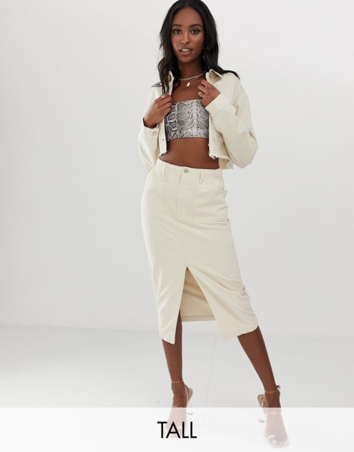 Missguided Tall denim jacket & skirt in ecru two-piece