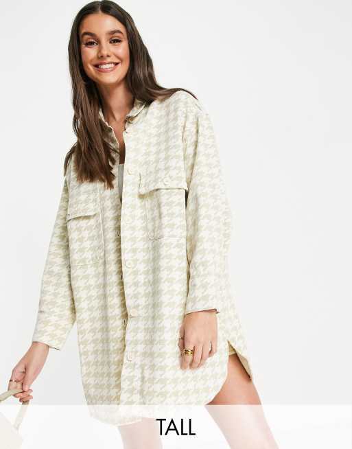 Missguided Tall oversized shirt in beige houndstooth - part of a set