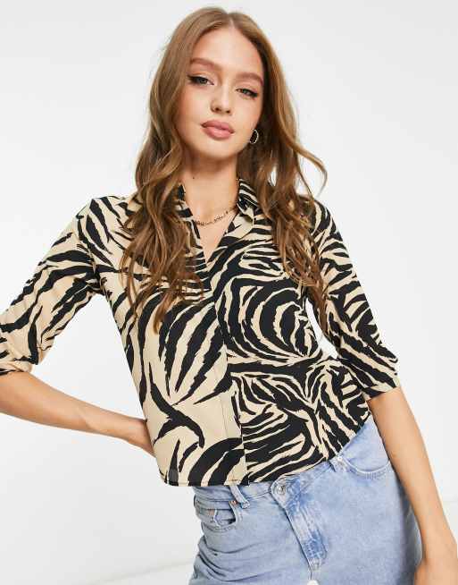 Monki 3/4 sleeve blouse in zebra print