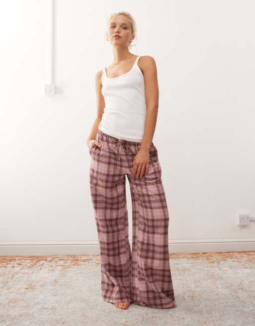 Monki flannel pajama pants in burgundy plaid