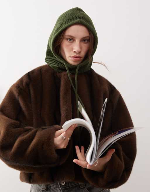 Monki knit hooded balaclava in olive green