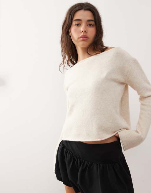 Monki knit sweater with flared sleeves in off white