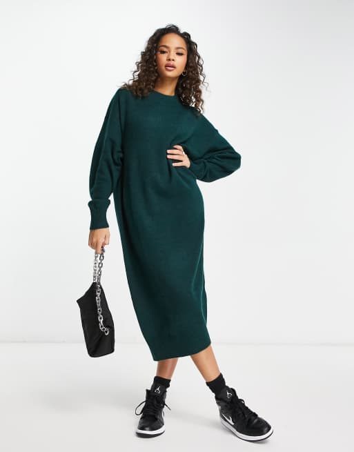 Monki knitted sweater midi dress in green