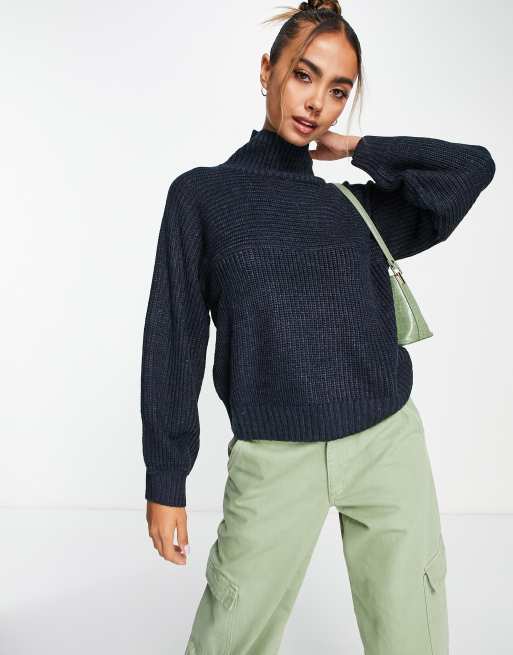 Monki Libby high neck sweater in navy knit