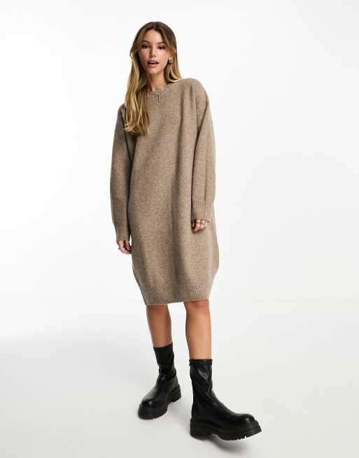Monki long sleeve oversized knitted sweater dress in beige