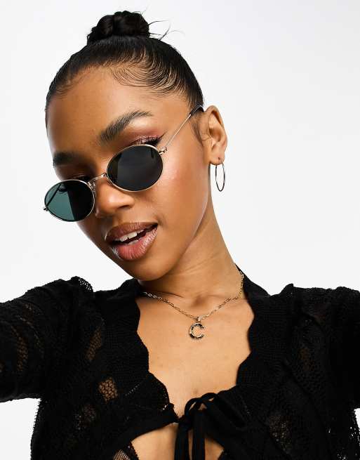 Monki mini thin oval sunglasses in black