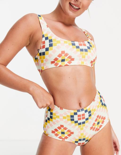 Monki Nilla high waist bikini bottom in mosaic print - MULTI