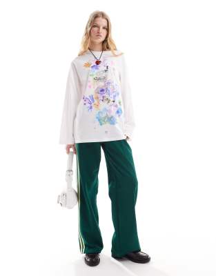 Monki oversize long sleeve T-shirt with love floral front print in white