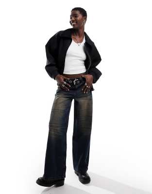 Monki oversized volume corduroy collar bomber jacket in black