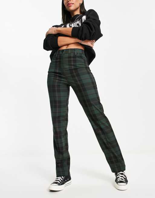 Monki slim leg pants in green tartan