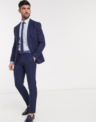 Moss London eco suit in blue check