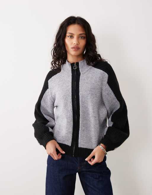 Motel Asrar zip up knit sweater in gray