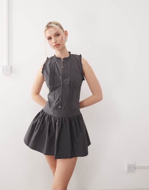 Motel dayara pintuck mini dress in charcoal gray