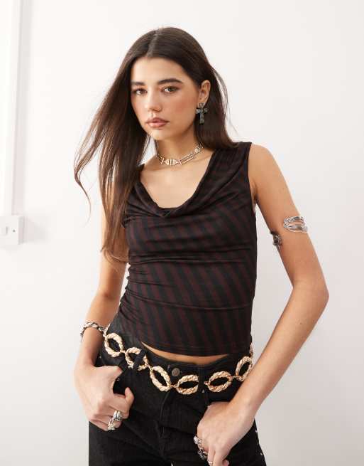 Motel hikari cowl neck striped top in maroon