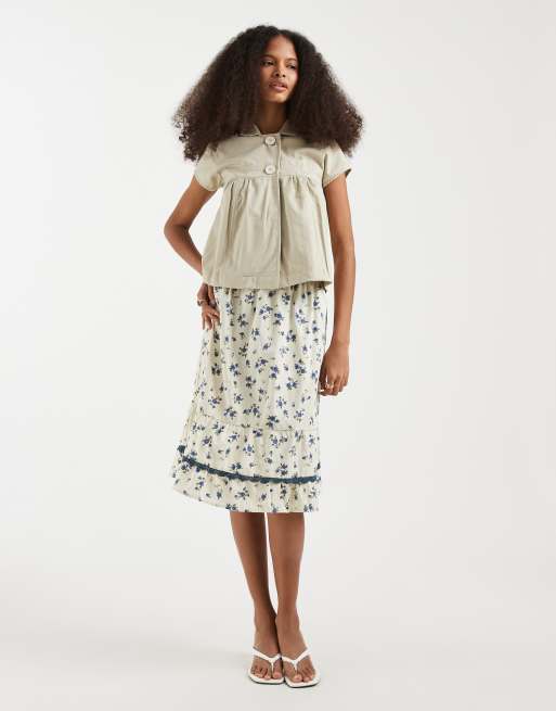 Motel Ilaria ditsy rose leaf skirt in light gray
