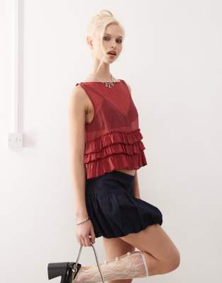 Motel Lamina unlined ruffle blouse in maroon