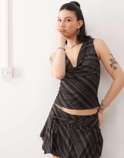 Motel losa striped cowl neck tank top in dark gray - part of a set