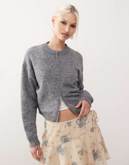 Motel maira zip up knit cardigan jacket in gray